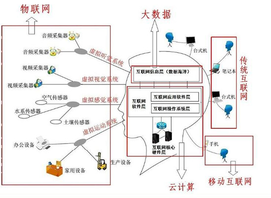 我们可以通过这样一张图片,形象的知道大数据与移动互联网、物联网以及传统互联网的关系。物联网,移动互联网再加上传统互联网,每天都在产生海量数据,而大数据又通过云计算的形式,将这些数据筛选处理分析,提前出有用的信息,这就是大数据分析。